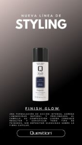 Finish Glow: El toque de sofisticación final. Este spray de brillo capilar aporta una luminosidad intensa y prolongada. Su composición es tan ligera que resalta el peinado sin depositar oleosidad, dejando el cabello con un aspecto sedoso y saludable.